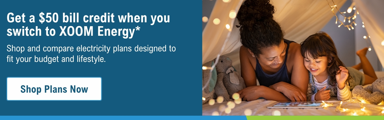 *Limited time offer. The $50 bill credit is a one-time promotional offer only for first-time residential electric customers in Texas who enroll on the SureLock 24 Unbundled or SureLock 36 Unbundled fixed-rate plan. Additional eligibility requirements, terms and restrictions may apply. Please see our Terms of Service for full details, which can be found on online in the Product Details section of each plan and in your Welcome Email/Letter. Previous customers or existing customers are not eligible. $50 bill credit will be awarded on your third electricity bill following the initiation of service on this plan. You must maintain enrollment on this plan in good standing (no past-due balance or pending termination) at the time of credit award to receive the bill credit. Any positive bill credit balance will carry forward to the next month's electricity bill. Bill credits are not transferrable and not redeemable for cash. XOOM Energy may discontinue this offer at any time without prior notice.